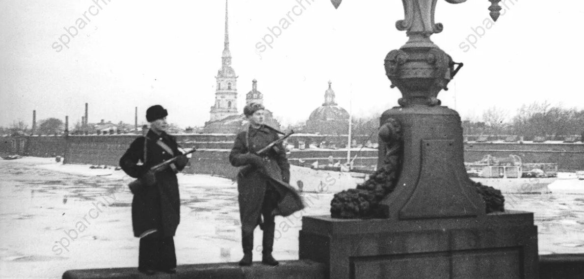 Патруль на Кировском (Троицком) мосту. 1941 год. Автор съемки: Трахтенберг Давид Михайлович. ЦГАКФФД СПб. Ар 99168_2