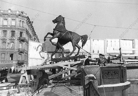 В октябре 1941 года Исполком Ленгорсовета принял решение о защите и маскировке скульптурных групп Клодта.